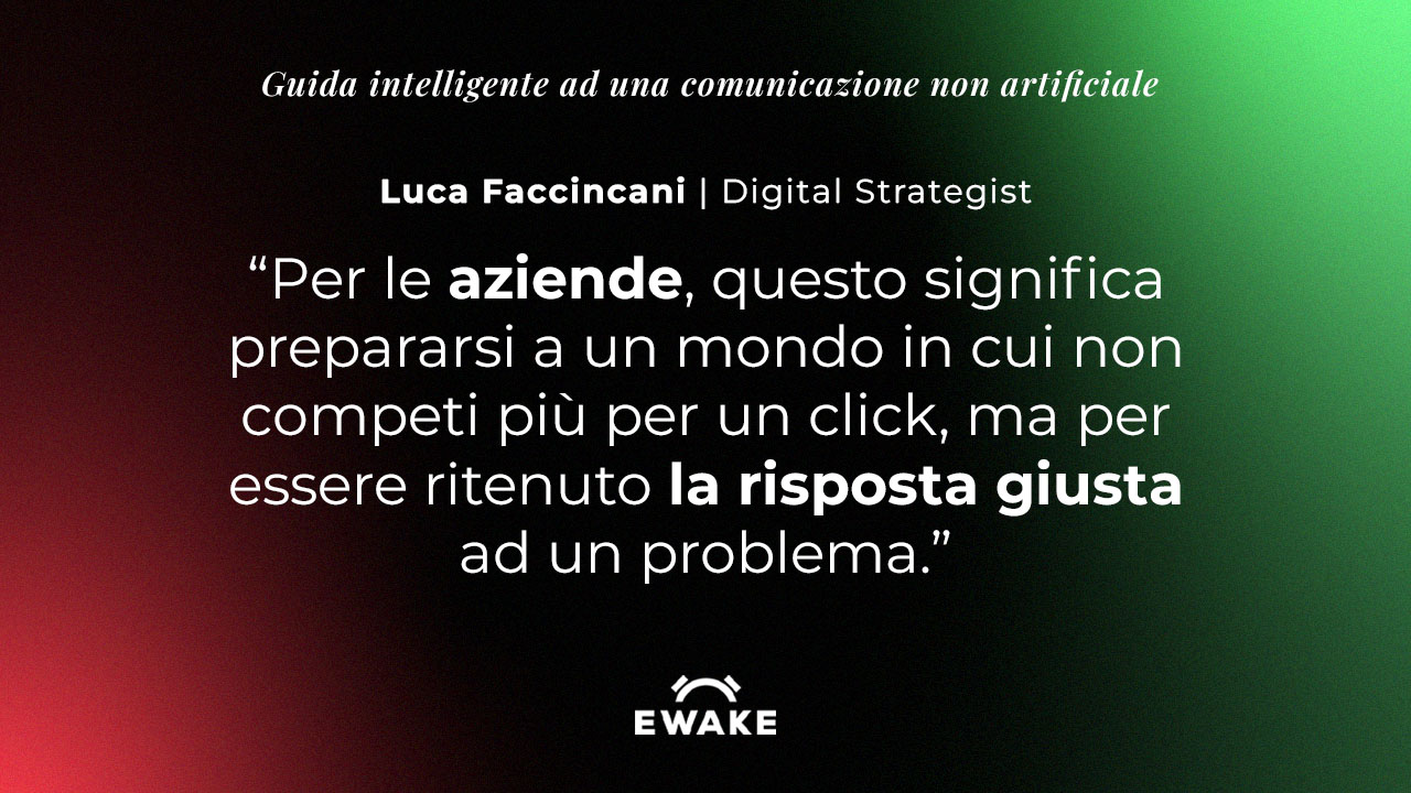 Per le aziende, questo significa prepararsi a un mondo in cui non competi più per un click, ma per essere ritenuto “la risposta giusta” ad un problema.