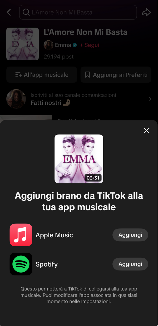 Questo contesto è spesso sufficiente per spingere gli utenti a ascoltare la traccia completa sulle piattaforme di streaming, salvarla nelle proprie librerie o aggiungerla alle playlist personali. La funzione “Aggiungi brano” di TikTok, introdotta nel 2024, ha già generato oltre un miliardo di salvataggi di brani sulle app di streaming, una chiara dimostrazione di come i trend di TikTok si traducano in comportamenti di ascolto oltre la piattaforma stessa.
