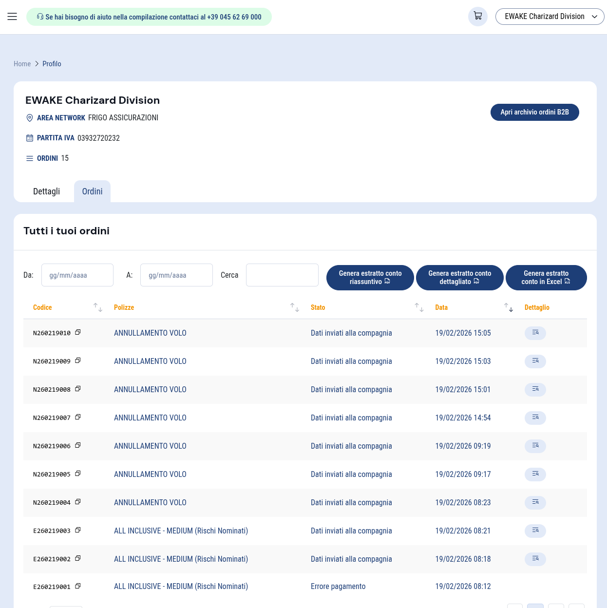Abbiamo iniziato con una sola polizza. Oggi la piattaforma gestisce 32 polizze attive, 3.000 ordini al mese, oltre 2.000 agenzie in Italia.